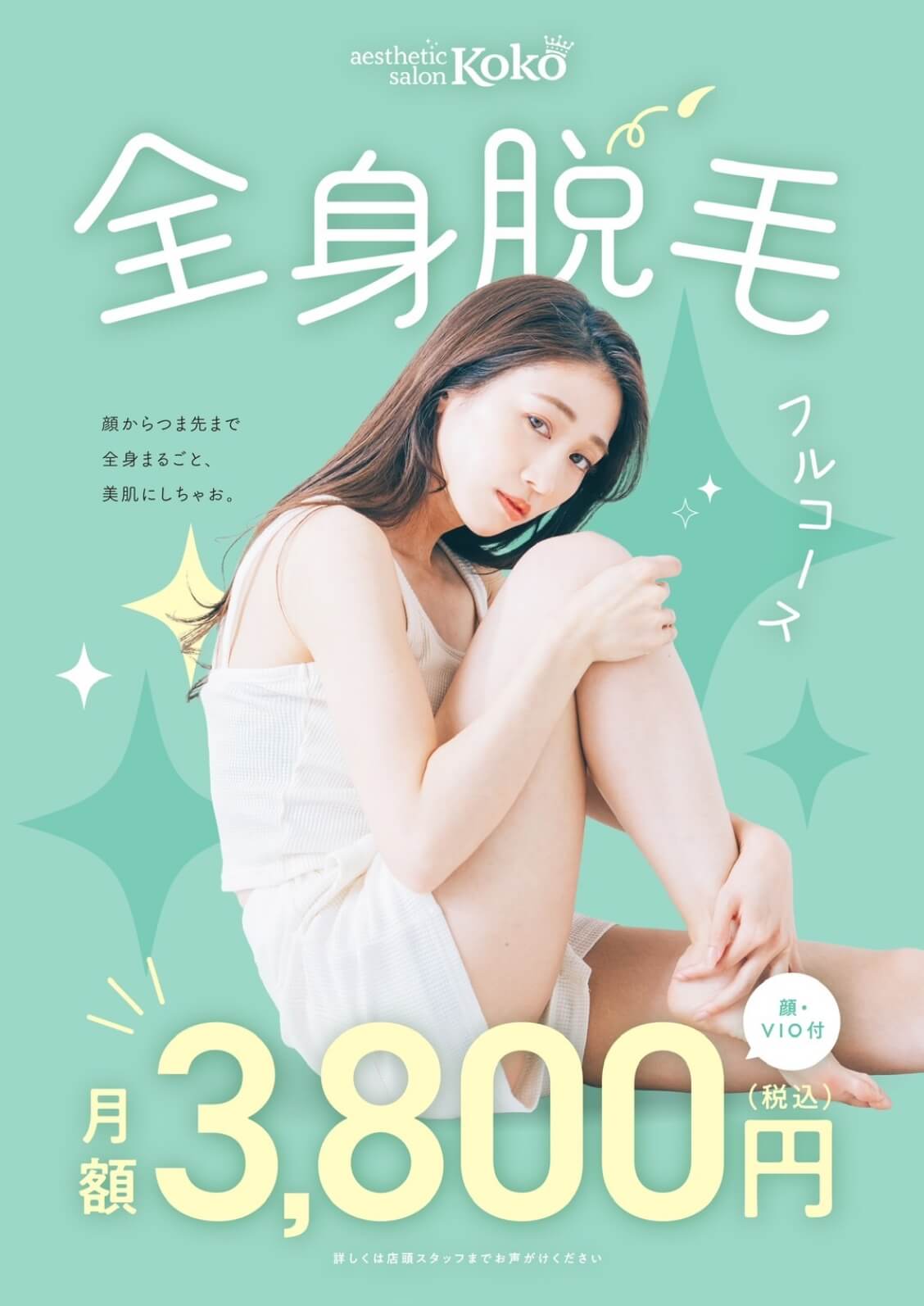 レディース全身脱毛フルコース 月額3,800円(税込)