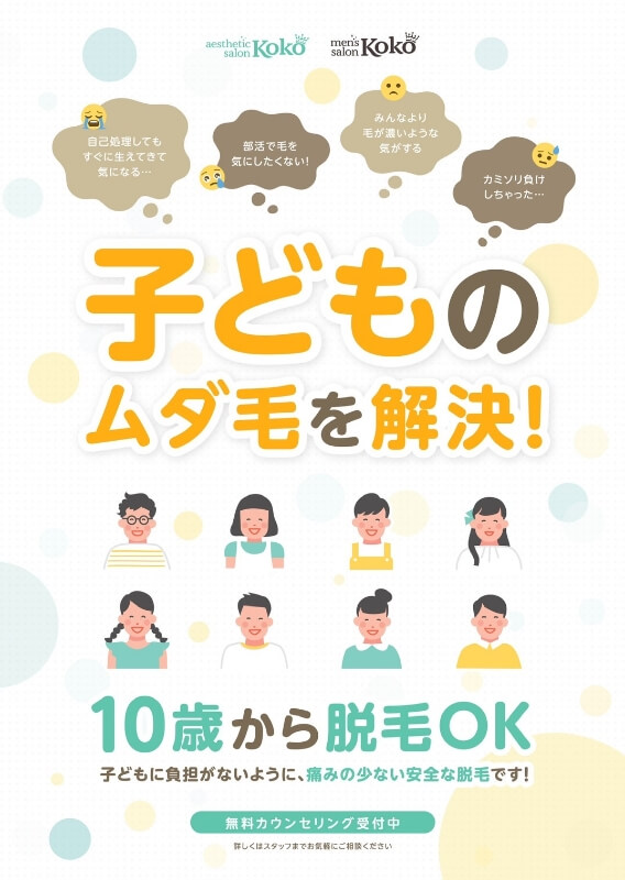 Kokoでは脱毛を中心にフェイシャルエステを提供しています。また今後は様々な美に関するメニューを取り入れていく予定です。